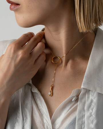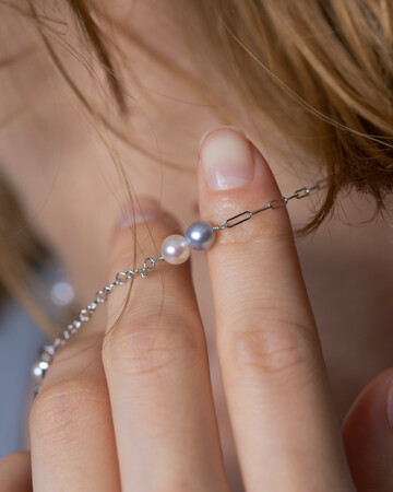 繊細なチェーンとボリュームのある5mmパールとのコントラストが、遊び心のあるコンテンポラリーな印象のネックレス。イレギュラーな要素のコンビネーションが、カジュアルなエッセンスをプラスしています。