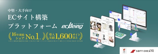 EC サイト構築プラットフォーム「ecbeing」は、1999 年のサービス販売開始以来、大手や中堅企業を中心に1,600サイト以上の導入実績があるEC のプラットフォームシステムで、を国内トップシェアを誇る E ビジネスの総合ソリューション 1※ です。