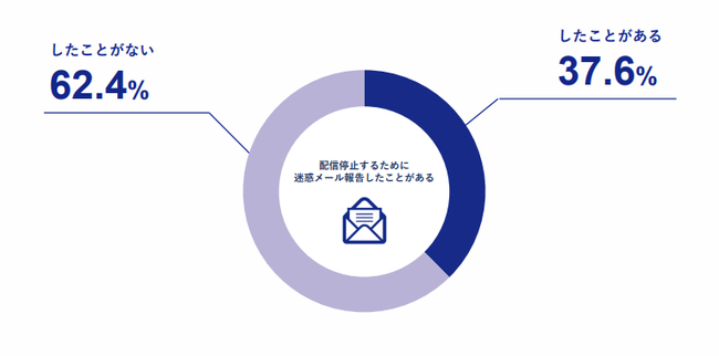 「受信しているメルマガの配信停止を行うために迷惑メール報告をしたことがあるか」の調査をおこなったところ、37.6%もの人が「したことがある」と回答しています。