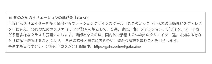 *GAKUウェブサイトでは、授業の様子をレポートにてご紹介しています。ぜひご覧ください。