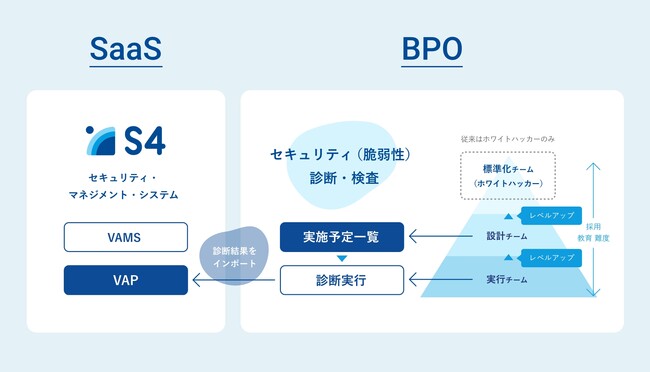 クラフは、セキュリティ・マネジメント・システム(S4)の開発と提供を行うSaaS事業と、セキュリティ(脆弱性)診断・検査を主としたBPO事業の2つの事業を運営しています。
