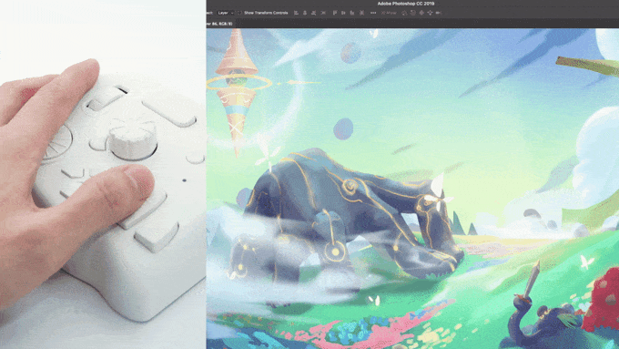 TourBoxシリーズの各ボタンは独特の形をしており、不規則な配列になっています。このおかげで、コントローラーを見なくても直感的で快適な操作が可能となっています。各ソフトのショートカットをユーザー自身が割り当てて使います。複数のボタンを組み合わせた操作も可能で、TourMenuの設定数を加えると、数百種類ものキー操作を設定できます。そのため画面に集中しながら片手でソフトを効率よく動かせます。