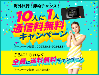 さらに、期間中に「ZEUS WiFi for GLOBAL」をお申し込みいただいた方の中から、10人に1人通信料が無料になるキャンペーン「10人に1人無料キャンペーン」を実施し、快適な海外旅行をサポートいたします。2023年末のお正月休みは6連休であり、年明け1月4、5日を休めば最大11連休になると言われています。冬の海外旅行をご検討の方は、このお得な機会にぜひお試しください。
