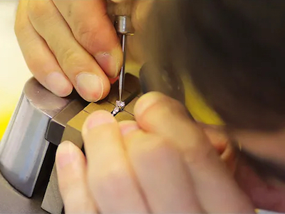 ビズーのブライダルリングを作るのは、400年もの歴史をほこる宝飾の町、山梨県甲府の職人たち。何十工程も経て完成する指輪の、ひとつひとつの工程を専門の職人が担当し、作業はすべて手作業。「職人の手こそが技術の神髄」だという誇りを胸に、職人たちが最上の技術を注ぎ作り上げています。