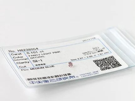 宝石の品質にこだわり続けるビズーだからこそ、ご安心いただける品質を保証するため、世界最大級の鑑定書発行部数を誇る「中央宝石研究所」によって鑑定されたものを採用。