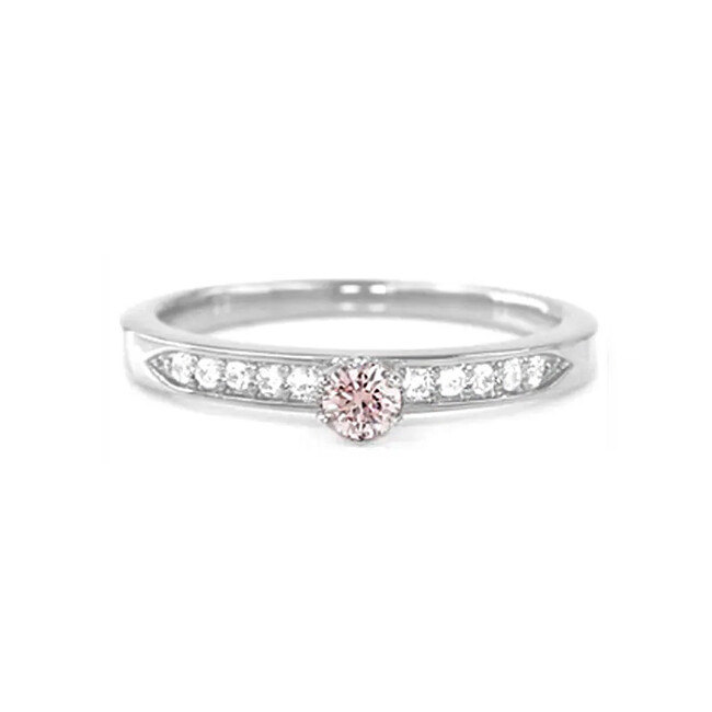 また、ピンクダイヤモンドの石言葉は、「永遠の愛」。 まさに、永遠の愛を誓うふたりの婚約の証にふさわしい宝石です。 想いあうふたりの心を映したような優しい色のダイヤモンドは、 生涯指先で甘く輝き続けることでしょう。