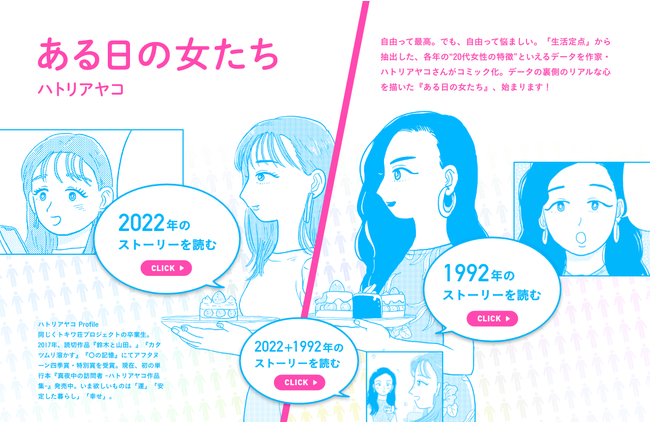 特定非営利活動法人LEGIKA(所在地:東京都品川区、理事長:小崎 文恵、以下「LEGIKA」)は、株式会社博報堂(本社:東京都港区)のシンクタンク・博報堂生活総合研究所(以下「生活総研」)が公開する『データ・コミック あの頃と今の“若者”を、データをもとに描いたら。 2022/1992』(以下、「データ・コミック」)における編集・制作支援を行いました。「データ・コミック」は、長期時系列調査「生活定点」の30周年を記念して公開されるものであり、価値観やライフスタイルに根ざした調査データに基づいて、1992年と2022年の若者の特徴をマンガで表現しています。