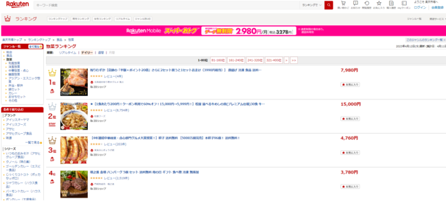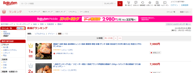 わずか出店1ヶ月目で想定を上回る売上げを記録した結果、楽天市場の唐揚げ35,801件ある中