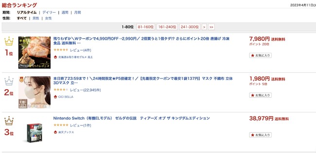 2023年4月13日現在「奇跡の半額+ポイント20倍実施中!」大盛況につき半月以上待ち