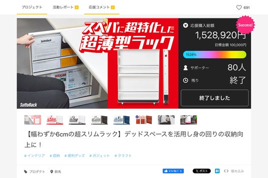 クラウドファンディングにて標達成率1528%を達成!