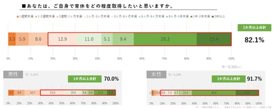 若年社会人の約8割が1か月以上の育休取得を希望。