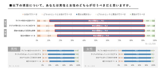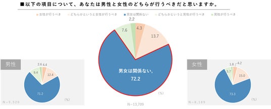 育児や家事に関する項目について、7割以上が性別は関係ないと回答。