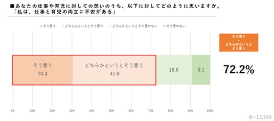 「仕事と育児の両立に不安がある」と感じる若年層は72.2%。