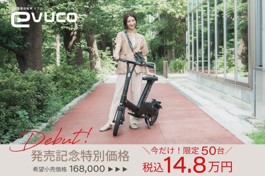 大人が似合うミニマルなフル電動自転車『evuco(イブコ)』、一般販売スタート!公式オンラインサイト限定で、発売記念50台を特別価格14.8万円(税込)にてご提供。