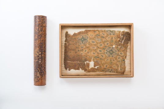 斑竹筒/七宝宝相華文 絹袋 (像内納入品) (重要文化財)