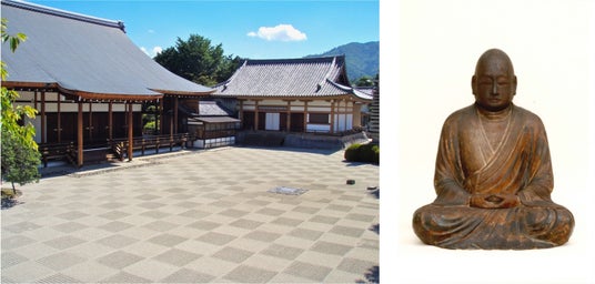 画像左:聖護院門跡 宸殿・本堂外観 | 画像右:智証大師坐像 (重要文化財)