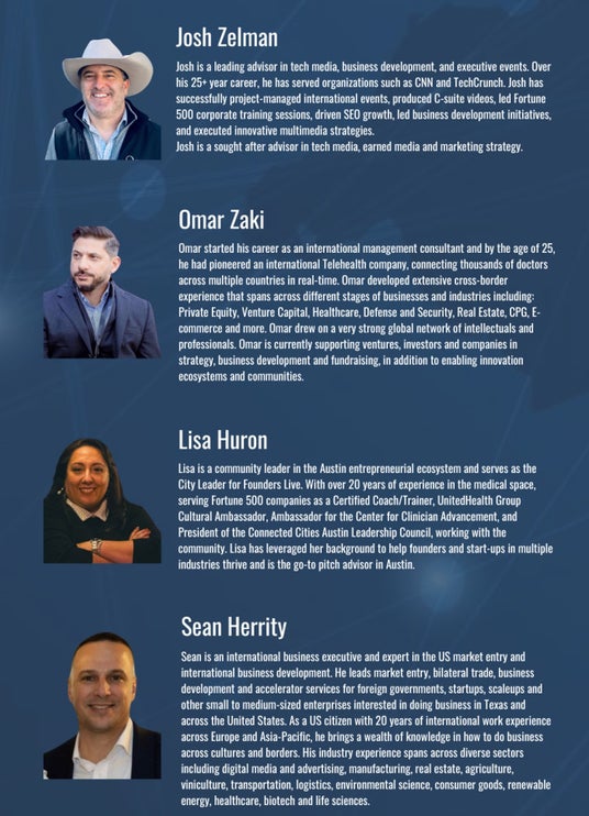 イノベーション戦略に取り組むグローバル・インテグレーター。ミッションは、個別化された目的主導型のサポートを通じて、ソフトランディング、二国間プログラム、企業の市場参入を促進することです。従来のセッションにとどまらず、確固たる成長と成功のための実践的なサポートを提供しています。