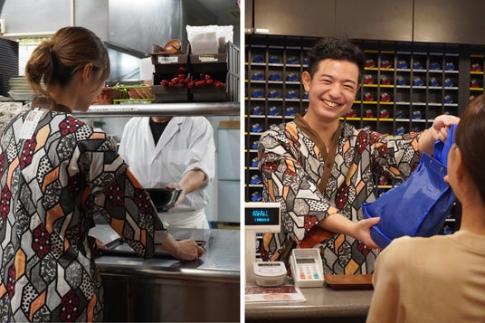 和装は、上品さが生まれる所作や、ジェンダーに関係なく着こなせることが特徴です。その良さを引き継ぎながら、現代にマッチするデザインにしました。着心地の良さを追求し、 ゆまーるスタッフのみなさんが毎日着たくなるような制服を作りました。