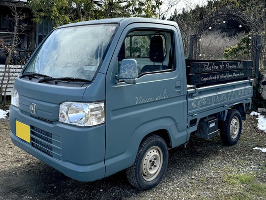 お客様コメント:中古の軽トラが来たのが1月で雪がある寒い時期は外での塗装は無理でしたので、外せるアオリやバンパーなどは室内で塗装しました。春になりやっとボディの養生、ヤスリ掛けがやっとできました。塗装はハケのみで3度塗りをしました。とても綺麗に塗れたと思います。