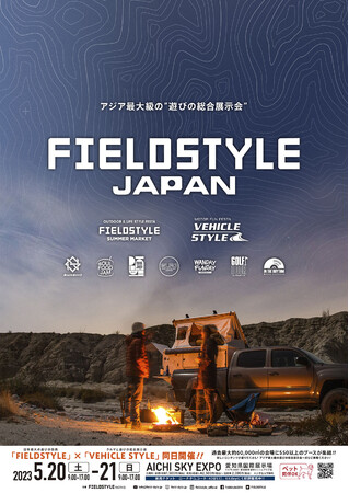 FIELDSTYLE works(代表 小池知宏、愛知県豊田市 株式会社エムズカンパニー)は、2023年5月20日(土)~21日(日)に AICHI SKY EXPO 愛知県国際展示場で『FIELDSTYLE JAPAN』として、「OUTDOOR & LIFESTYLE FESTA:FIELDSTYLE SUMMER MARKET」と「MOTOR FUN FESTA:VEHICLE STYLE」をアジア最大規模で同時開催致します。