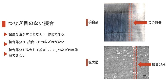 接合部以外は素材強度のまま、接合部は非接合材と比較して90%以上の強度を確保する技術を確立。