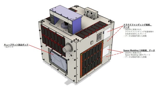 本衛星には、醍醐寺塔頭菩提寺より依頼を受けた「宇宙寺院 劫蘊寺(ごううんじ)」や、JAXA追跡ネットワーク技術センターが開発し、佐賀県が製造した衛星レーザ測距(Satellite Laser Ranging/SLR)用小型リフレクター「Mt.FUJI」など、複数の機器を搭載しており、宇宙用部品等の軌道上実証を行います。