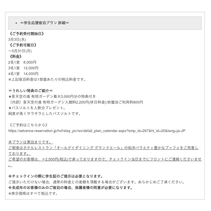 県外へ旅行をすることが難しい状況下にある中で、近場でも“その時しか味わえない素敵な思い出”を作っていただけるような学生限定のお得な宿泊プランを、是非この機会にお楽しみください。