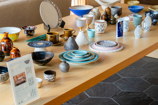 行楽シーズンの秋は、全国各地で陶器市が開催される時期。京都でも各所で陶器市が開かれます。ホテル カンラ 京都では「各所の陶器市と合わせてお立ち寄りいただき、スタッフとの会話も含めて旅の記憶として持ち帰っていただけたら」という想いで、5年前より陶器市を開催しています。