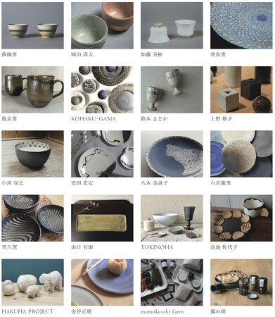 出展者:蘇嶐窯 / 岡山 高大 / 加藤 美樹 / 洸春窯 / 亀京窯 / 鈴木 まどか / 上野 敬子 / 小川 宣之 / 安田 宏定 / 八木 美詠子 / 六兵衞窯 / 晋六窯 / TOKINOHA / 山口 有加 / 高地 佐代子 / KOHAKU-GAMA / HAKUHA PROJECT / 金谷正廣 / mumokuteki farm / 霧の朝