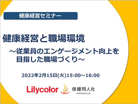 株式会社保健同人社(本社:東京都港区、代表取締役社長:段塚 忠宏、以下「当社」)は、2月15日(火)、企業の総務・人事ご担当者様を対象に健康経営セミナーを開催いたします。