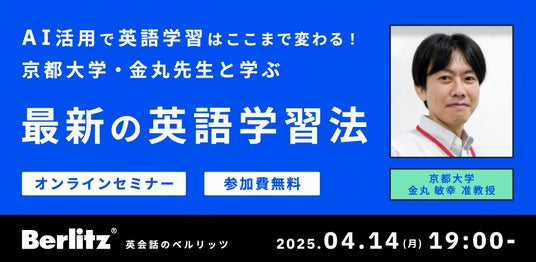 言語教育を研究分野とする、京都大学の金丸 敏幸准教授と、創業145年を迎える語学学校のベルリッツが、2025年4月14日(月)AIを活用した英語学習に関するオンラインセミナーを開催いたします。