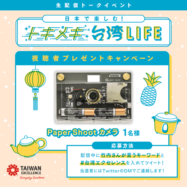 キャンペーンの詳細は、台湾エクセレンス公式Twitterおよび番組内でお知らせいたしますので、この機会にぜひご参加ください。