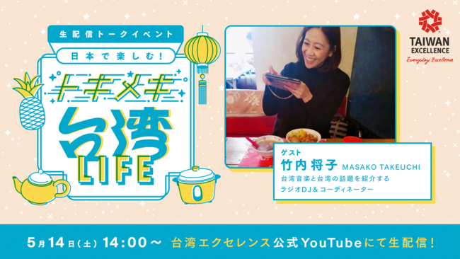 台湾貿易センター(TAITRA)は、「台湾カルチャーを日本から楽しむ」をコンセプトにお届けするトークイベント『日本で楽しむ!トキメキ台湾LIFE』を、5月14日(土)に台湾エクセレンス公式YouTubeチャンネルにて生配信します。