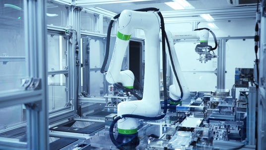 真空度検査、製函、梱包、帳票の荷揃えを担う2台のロボットアームにより、出荷工程(サンプルの出庫から検品前まで)の無人化を実現(協力:グローリー株式会社)。また、QRコードによる検品システムにより、効率化と同時に取り間違いなどのミスを防ぎます。