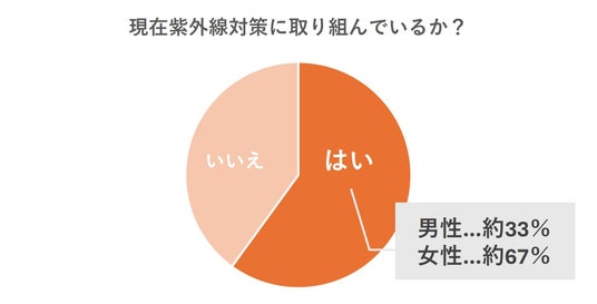 最新の調査では、紫外線対策に取り組むと回答した20~60代は6割。男女別では、女性が約8割、男性は約4割となっています。SNS上では遮光100%の日傘に関心が集まり、ニュースでは数年前から増加している“日傘男子”が話題に。日傘のほかに、「飲む」日焼け止めサプリメントなども流行しています。また、調査回答者全体の約4割が「昨年よりも対策の意識が強まっている」と回答するなど、年々紫外線対策への注目が集まっていることが伺えます。