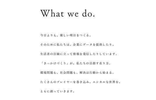 ナビゲーションを簡略化し、Ethicalizeの三大事業が一目で分かるように事業概要をわかりやすくまとめました。