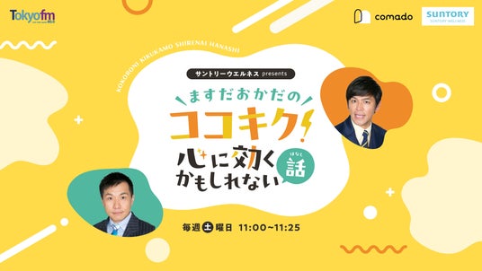 サントリーウエルネス(株)(以下、サントリーウエルネス)は、TOKYO FMの新ラジオ番組「ますだおかだのココキク!~心に効くかもしれない話~」の提供を開始します。