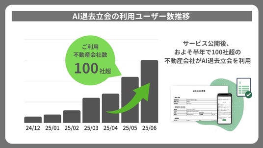 「AI退去立会」は 2024 年 12 月に提供を開始し、2025 年 6 月までに全国100社を超える不動産会社 がサービスを利用しています(※一部検証中ユーザーを含む)