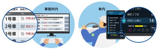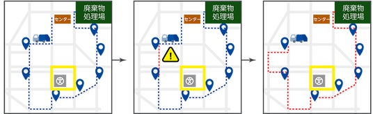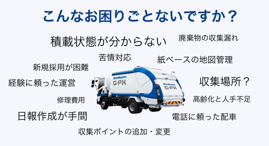 塵芥車は、家庭や事業所から出るさまざまな廃棄物を収集するために、あらかじめ決められたルートを走行しています。しかしながら、廃棄物の量や交通事情などは、各ルートや収集日・時間帯によって異なるため、急なルート変更や車両の応援手配が必要になるほか、効率よく収集を行うには、ドライバーとオペレーター双方の長年の経験やノウハウが必要で、かつ、これらの情報は主に電話が連絡手段となっていました。