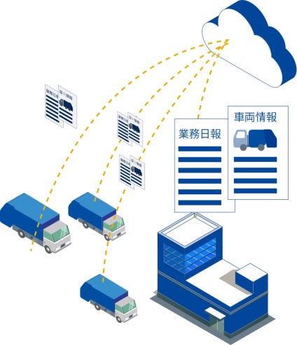 作業内容のデータ収集車両の稼働状況を収集することにより、各車両・ルートの作業負荷の見える化や業務日報の自動作成、塵芥車ごとに適切なメンテナンス時期をお知らせします。