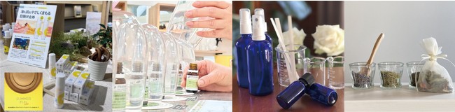 実施内容:アロマオイルの香り体験/アロマリフレッシュナー作成/ドライハーブのサシェ(匂い袋)作成