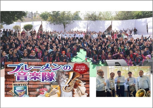 プロジェクトの第1歩として、日本の金管五重奏団がインドの学校で音楽会を開催し、音楽と物語を届けました。インドと日本のメンバーが異文化交流し、共創しながら作り上げたものです。