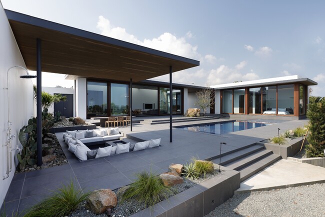 敷地内で唯一、1棟で独立した建築の青島の家。屋内面積約200平方メートル に加え、テラスが560平方メートル と最大規模。マスターベッドルームで朝目覚めると、一番最初に視界に入るのは海辺の景色。ロフト付きのゲストルームを備え、最大8名までの宿泊が可能です。