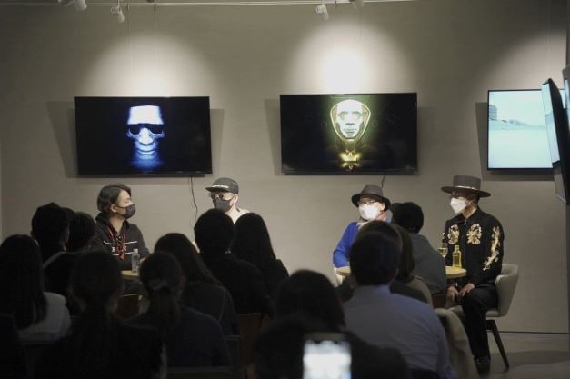 この度、当社が実施しました2回目のNFTオークションは、VRアーティストであるMYO氏が、人気YouTuberのラファエル氏をモチーフにしたデジタルアートを制作し、それをNFT化したものをオークションいたしました。当日は、オークションに先立ち、ラファエル氏と当社代表の倉田、そして制作を担当したMYO氏とのトークイベントも行われ、ラファエル氏からはNFT業界に参画した理由、なぜマスクをしているかなど興味深い話がありました。当社代表の倉田からはNFTの説明、NFTアートの将来などのお話をさせていただきました。会場からの活発な質疑応答後、オークション台が設置され、17時15分オークションが開始されました。ちなみに、今回のNFTは、イーサリアム、ERC1155規格のNFT(非代替トークン)が発行され、オープンシーにアップされています。