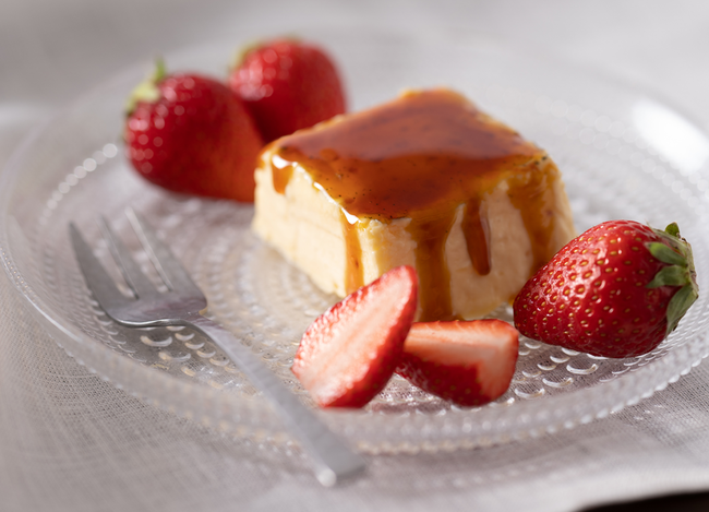 カタラーナは冷凍でお届けします。底面にカラメルを敷いているため、型から外していただくと、とろりとしたカラメルが全体に行きわたり、より美味しくお召し上がりいただけます。半解凍で、アイスクリームのように、解凍後はプリンのように柔らかく。お好みのタイミングで様々な口どけをお楽しみください。