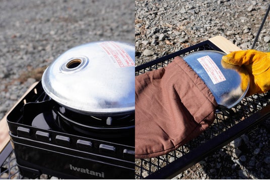 直火で加熱可能(IH調理器でも使用可)、厚手の専用袋つき。