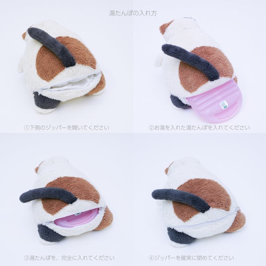 大人気の抱き枕「ねこ肯定感 みけねこのさんま」を湯たんぽカバーにアレンジ。