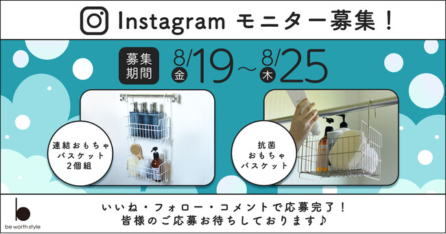 株式会社ビーワーススタイルは、新潟県三条市で金属加工商品をはじめとした様々な家庭用品を企画・販売しています。2022年8月19日(金)よりビーワーススタイル公式インスタグラムにて、人気の「おもちゃバスケット」新タイプ2種類のモニターキャンペーンを実施いたしました。