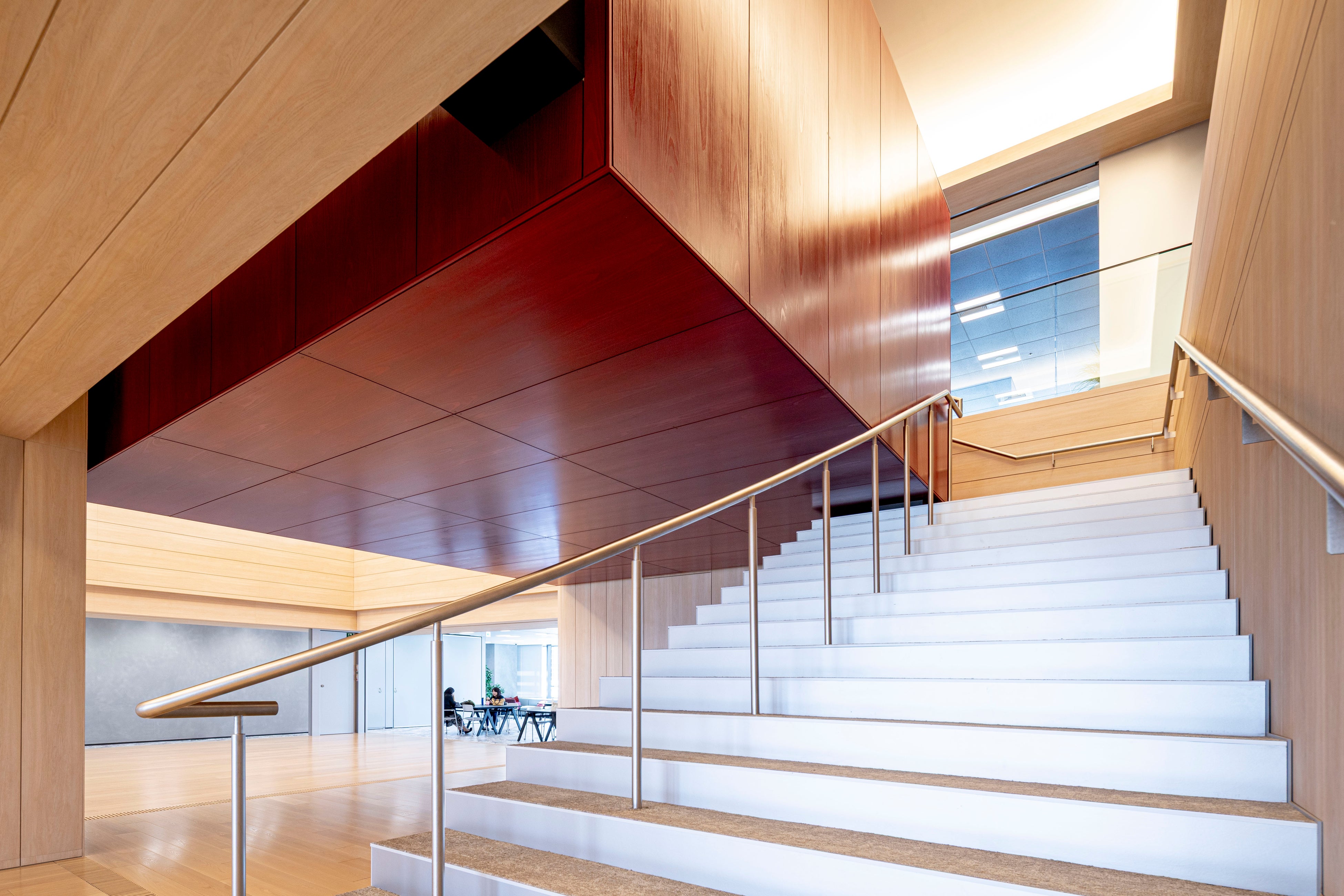 不燃材料の認定を取得した「漆建材」により、内装制限のある大規模施設でも“本物の漆”による空間構成が可能に。