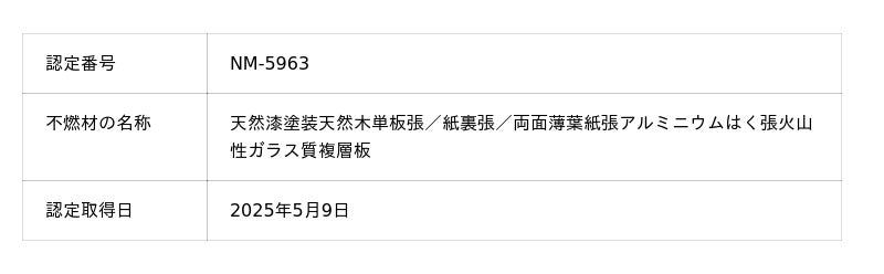 不燃材認定・漆建材の検討例